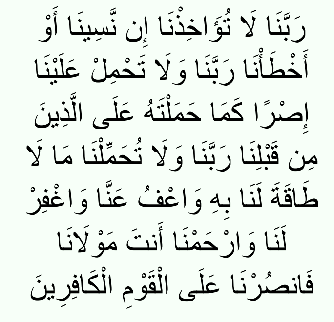 “Our Lord! Punish us not if we forget or fall into error; Our Lord! Lay not on us a burden like that which You did lay on those before us;