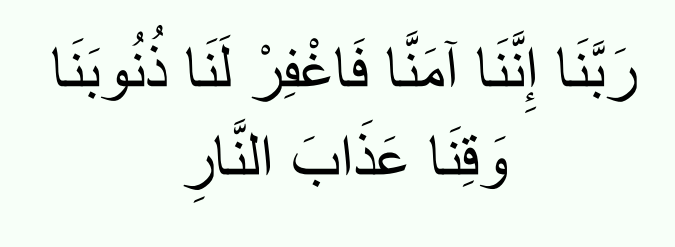 “Our Lord! We have indeed believed, so forgive us our sins and save us from the punishment of the Fire.”