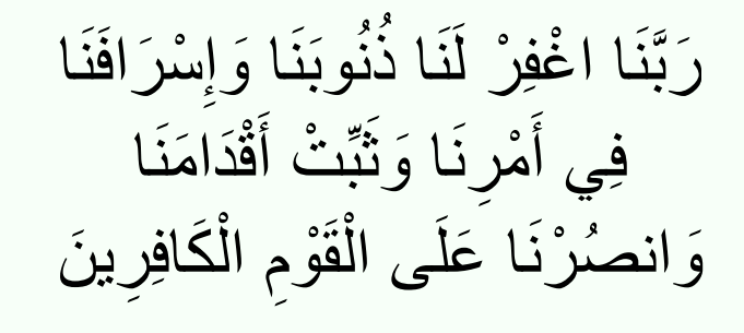 “Our Lord! Forgive us our sins and our transgressions (in keeping our duties to You), make our steps firm, and help us against the disbelieving