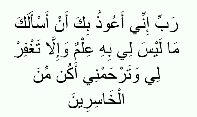 “My Lord! I seek refuge with You from asking You that of which I have no knowledge. And unless You forgive me and have Mercy on me, I would indeed be one of the losers.”