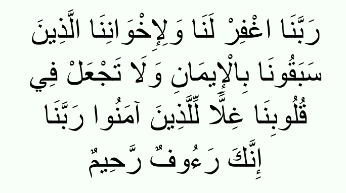 “Our Lord! Forgive us and our brethren who have preceded us in Faith, and put not in our hearts any hatred against those who have believed. Our Lord!