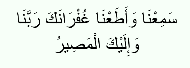 “We hear, and we obey. (We seek) Your Forgiveness, our Lord, and to You is the return (of all).”