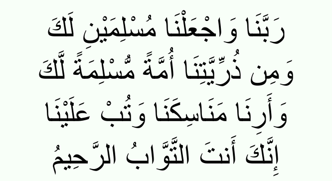“Our Lord! And make us submissive unto You and of our offspring a nation submissive unto You, and show us our Manasik (Ways of Devotion), and accept our repentance.