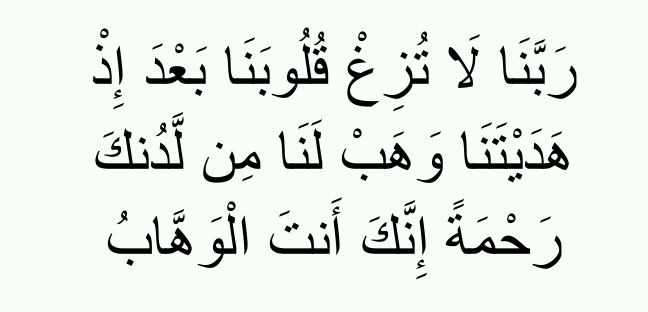 “Our Lord! Let not our hearts deviate after You have guided us, and grant us mercy from You. Truly, You are the Bestower.”