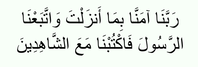 “Our Lord! We believe in what You have sent down, and we follow the Messenger so write us down among those who bear witness.”
