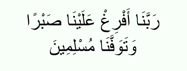 “Our Lord! Pour out on us patience, and cause us to die as Muslims (the one submitting to Allah’s Will).”