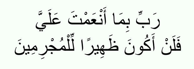 “My Lord! For that with which You have favored me, I will never more be a helper for the Mujrimun (criminals, sinners, etc.)!”