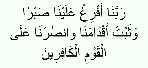 “Our Lord! Pour forth on us patience, make our steps firm and help us against the disbelieving people.”