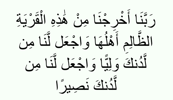 “Our Lord! Rescue us from this town whose people are oppressors; and raise for us from You one who will protect, and raise for us from You one who will help.” (Qur’an 4:75)