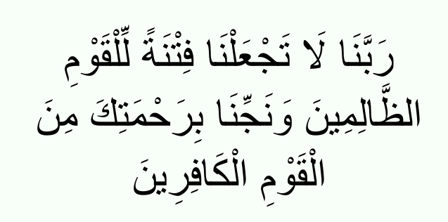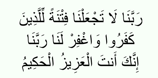 “Our Lord! Make us not a trial for the disbelievers, and forgive us, Our Lord! Verily, You, only You are the All-Mighty, the All-Wise.”