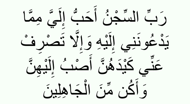 “My Lord! Prison is more to my liking than that to which they invite me. Unless You turn away their plot from me, I will feel inclined towards them and be one of the ignorants.”