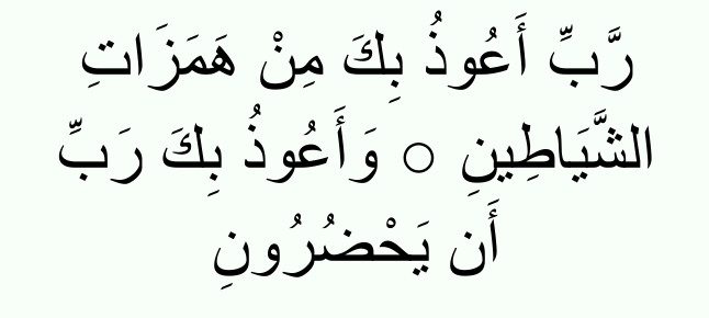 “My Lord! I seek refuge with You from the whisperings of the Shayatin (devils),” “And I seek refuge with You, My Lord! lest they may attend (or come near) me.”